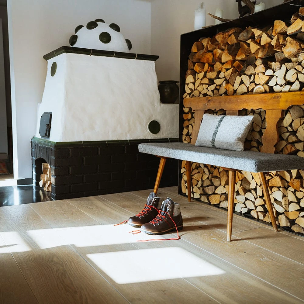 - Obermaterial aus Nappa-Leder mit strukturierter Haptik und Schaftbereich aus Original Steiner Loden