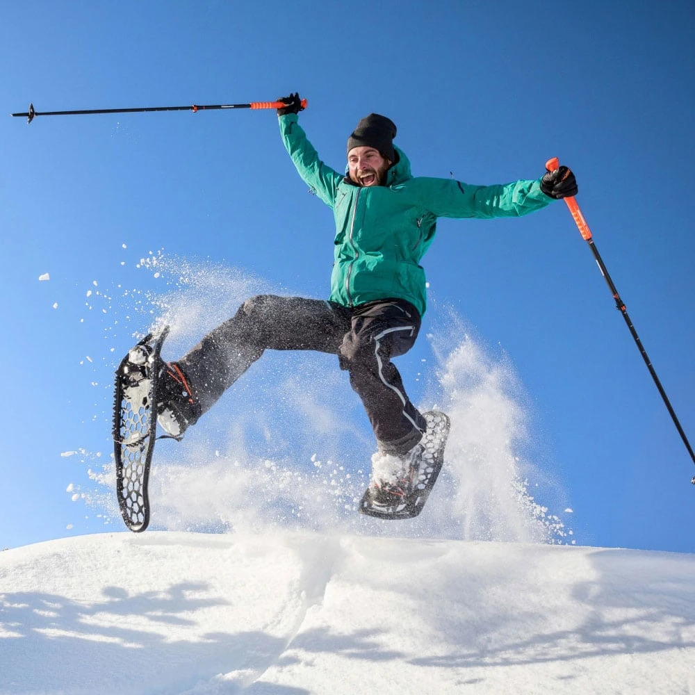 Auf zur nächsten Schneeschuhtour – ob erlebnisreiche Winterwanderungen im Bayerischen Wald oder anspruchsvolle Bergtouren in den Alpen, mit den Peakmaster Schneeschuhen von Komperdell kommst du fast mühelos an dein Ziel. Besonders bei Tiefschnee und Eis verhinderst du so wirkungsvoll ein Abrutschen oder Einsinken. Dazu tragen insbesondere seine vielzähligen Features und hochwertig verarbeiteten Merkmale bei. Das Hypalon Decking ist besonders widerstandsfähig bei felsigem und hartem Untergrund. Der High Performance Aluminium-Rahmen hält auch hohen Belastungen stand und für einen exzellenten Halt sind die Stell Craws vorgesehen. Die integrierten Ice Rails sorgen für maximale Traktion und die komfortable Easy Step-in Bindung passt für jede Schuhgröße und normales Outdoor-Schuhwerk.