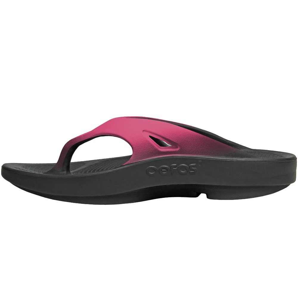 Entspannte und regenerierte Füße unterstützen dein Leben Tag für Tag durch körperliches Allgemeinwohl, so dass du deine Leistungen bis an die Spitze bringen kannst! Die patentierten Oofos Ooriginal Sport Schlappen sorgen für bis zu 37% mehr Shock-Absorption bei jedem Schritt und entlasten demnach deine Knie, Gelenke und den unteren Rückenbereich. Das besonders weiche und flexible Material spendet einen komfortablen Tragekomfort, wobei die auf der Sohle geprägten Bereiche ähnlich wie eine Massagefunktion wirken. Auch der Zehensteg verspricht dank super-softer Flexibilität weniger Reibung und verhindert unangenehme Schmerzen. Die Sommersandalen sind zudem wasserabweisend, antibakteriell, nehmen keine Gerüche an und eignen sich im Notfall auch zur Reinigung in der Waschmaschine.