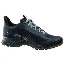 Der Einstieg in den wasser- und winddichten Wanderschuh erfolgt über einen hohen sowie gepolsterten Schuhschafft. Das klassische Schnürsystem, welches über Ösen aus Metall verläuft, sorgt dabei für einen festen Halt. Die Zunge des Wanderschuhs wurde fest vernäht, wodurch ein unangenehmes Verrutschen sowie das Eindringen von kleinen Fremdkörpern verhindert werden. Durch die gummierte Zehenkappe und den verstärkten Fersenbereich wird der Fuß vor äußeren Einwirkungen geschützt, während eine vorgeformte Einlegesohle zu einer sanften Polsterung empfindlicher Stellen beiträgt. Für einen sicheren Halt auch auf feuchten Untergründen ist eine Außensohle mit High-Traction-Contagrip zuständig.